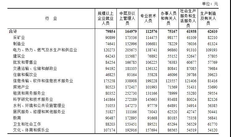 生產(chǎn)制造及有關(guān)人員平均工資最高的行業(yè)是電力、熱力、燃?xì)饧八a(chǎn)和供應(yīng)業(yè),平均工資為109193元;中層及以上管理人員、專業(yè)技術(shù)人員、辦事人員和有關(guān)人員、生產(chǎn)制造及有關(guān)人員四類(lèi)崗位平均工資最低的行業(yè)均為住宿和餐飲業(yè),平均工資分別為93164元、55828元、46096元、39623元。